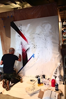 So, we think these look pretty great, and we also think you should let all your friends know. People who are into Street Art, Fashion, Sandy Relief, collecting one of a kind artworks that you can WEAR if you want to… Plus, these guys do some really interesting work, and Mare139 has been around for a long time, starting with painting subway cars in the 70s and 80s, to becoming the official US Graffiti Ambassador! (We have to admit, we had no idea there was such thing as a Graffiti Ambassador, but we’re glad we know now.) Anyway, it was pretty great to watch him work with Jimmy Raskin at his side, who does some pretty great stuff in his own right.